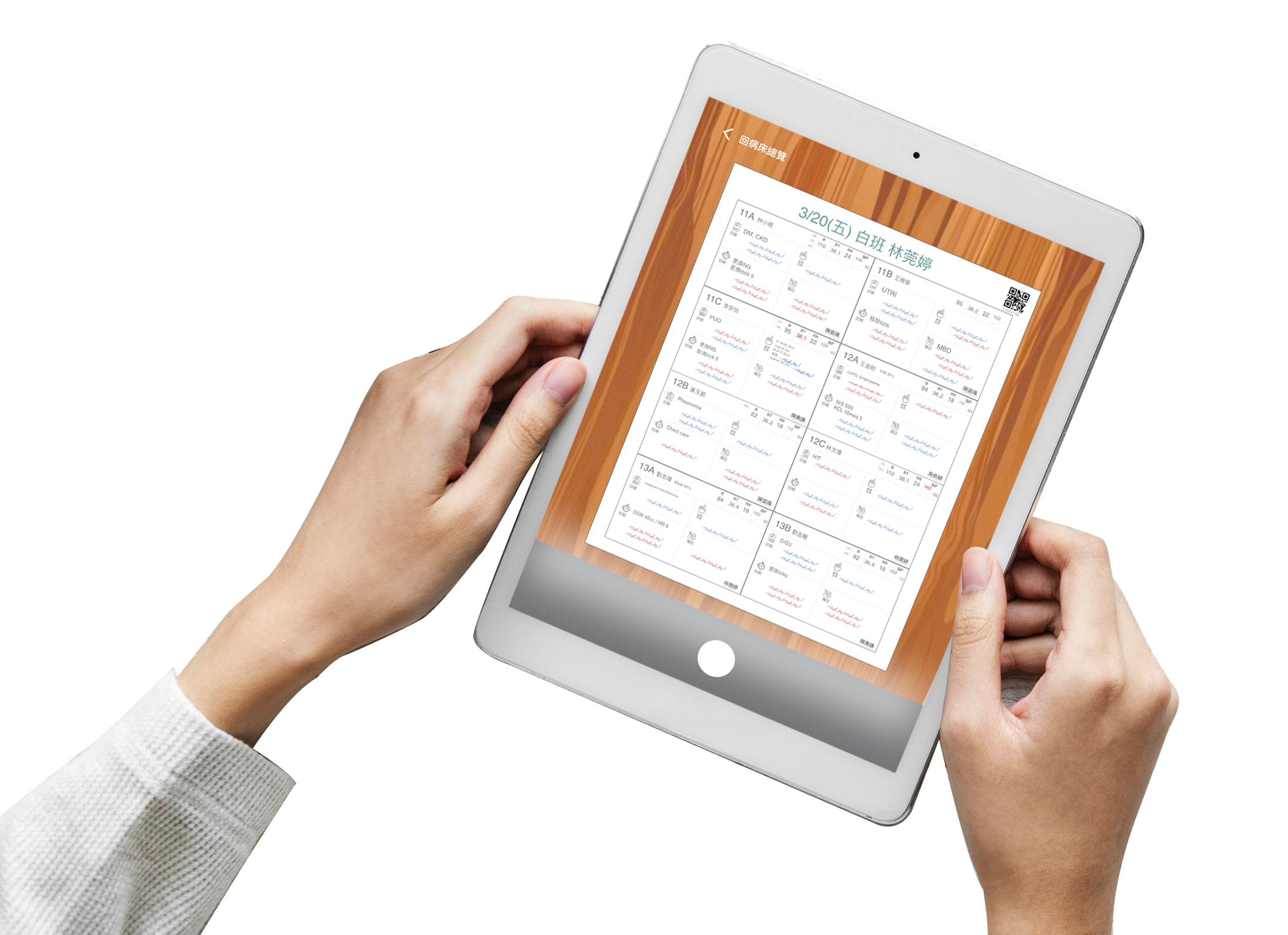 依照護理師習慣,使用病床進行排列,整合醫療資訊系統的必要資訊,免除重複謄寫時間。